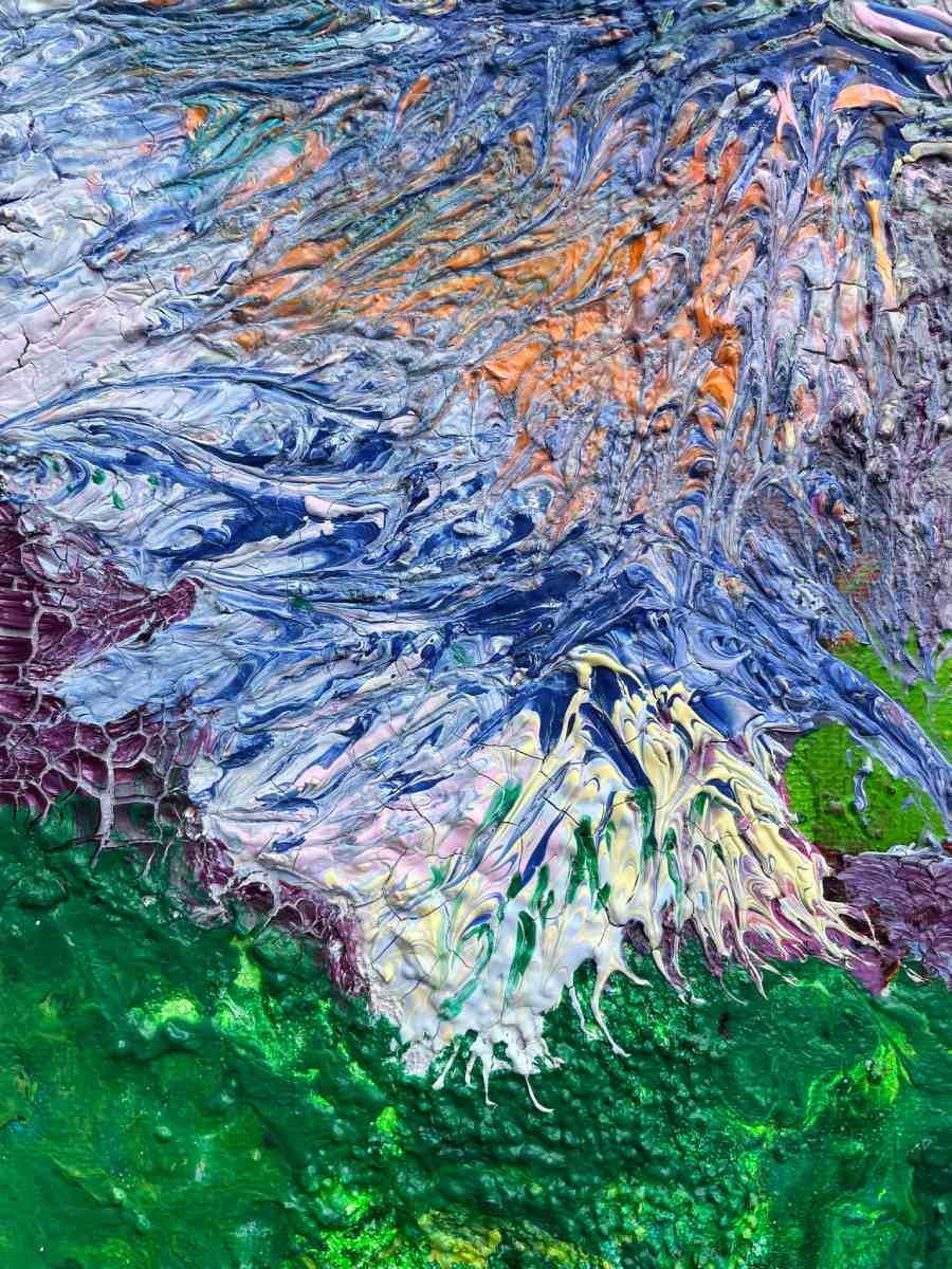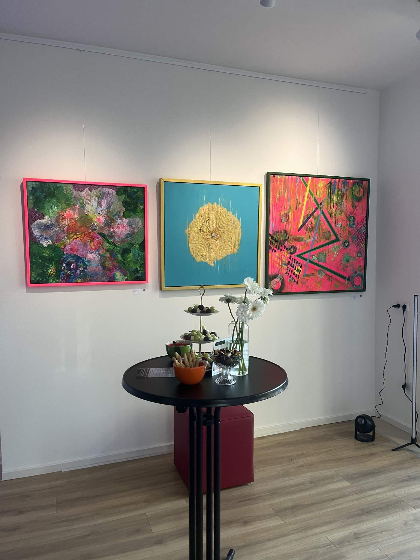 Die unterschiedlichen Materialien schaffen Tiefe und Rhythmus - manchmal zart, manchmal intensiv. Es ist ein Spiel aus Farbe, Form und Bewegung, das Raum für eigene Assoziationen öffnet.